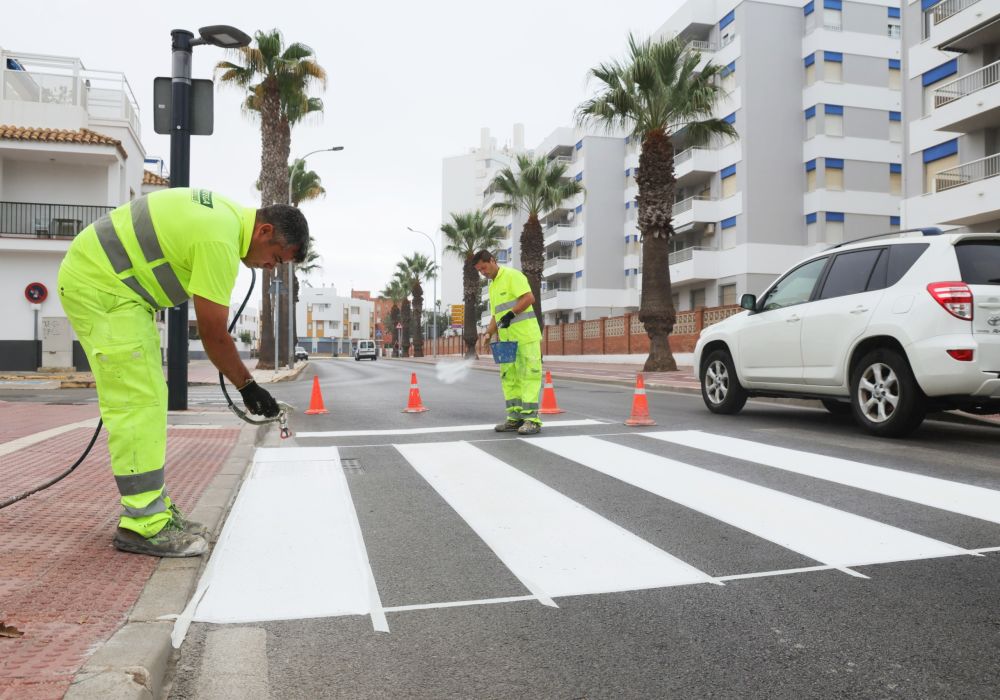 Los trabajos de repintado de la señalización vial, iniciados en las principales avenidas, continuarán por distintas zonas de la ciudad para mejorar la visibilidad y seguridad de peatones y conductores