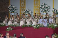 Así, ya coronada, la Dama Mayor ayudada por sus Pajes ha ido imponiendo las bandas a las Damas de su Corte de Honor.