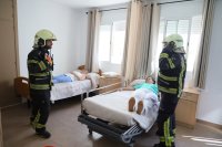 Técnicos de la empresa de prevención de riesgo laborales encargados del plan de actuación de la Residencia, el técnico municipal de prevención laboral, y 21 trabajadores de la plantilla de la residencia han participado en este simulacro, en el que los propios empleados han colaborado también a modo de usuarios, para evitar molestias a los abuelos, que en su mayoría cuentan con un importante nivel de dependencia.