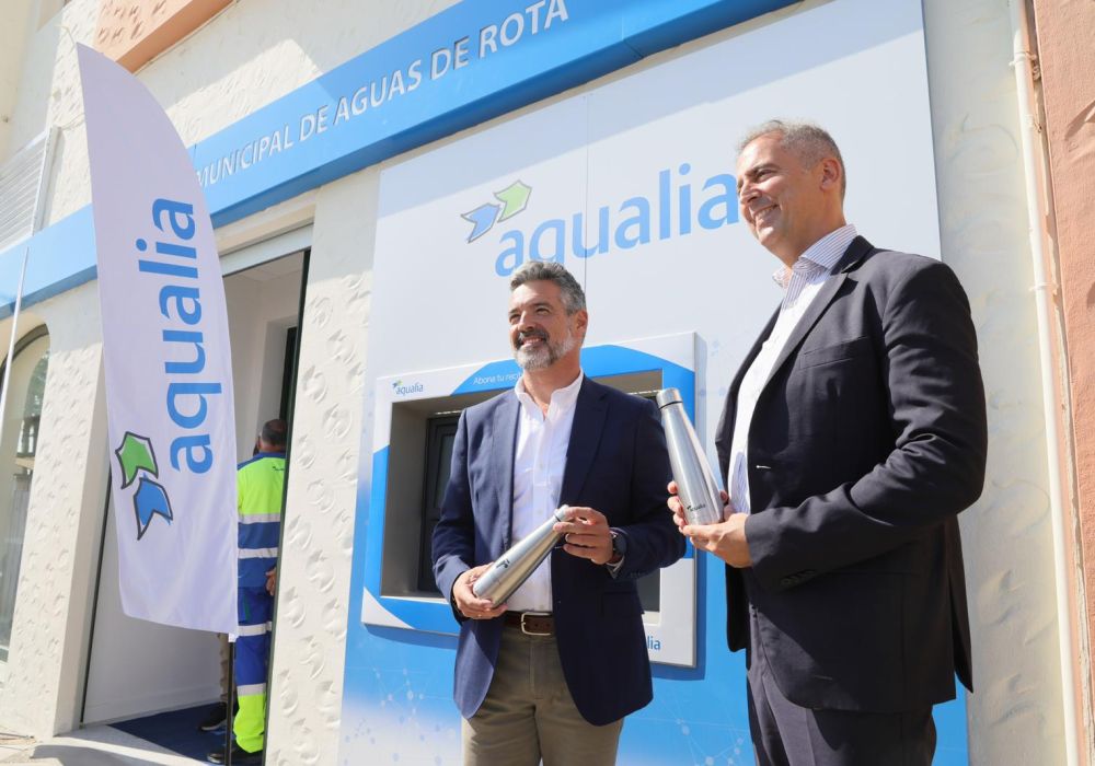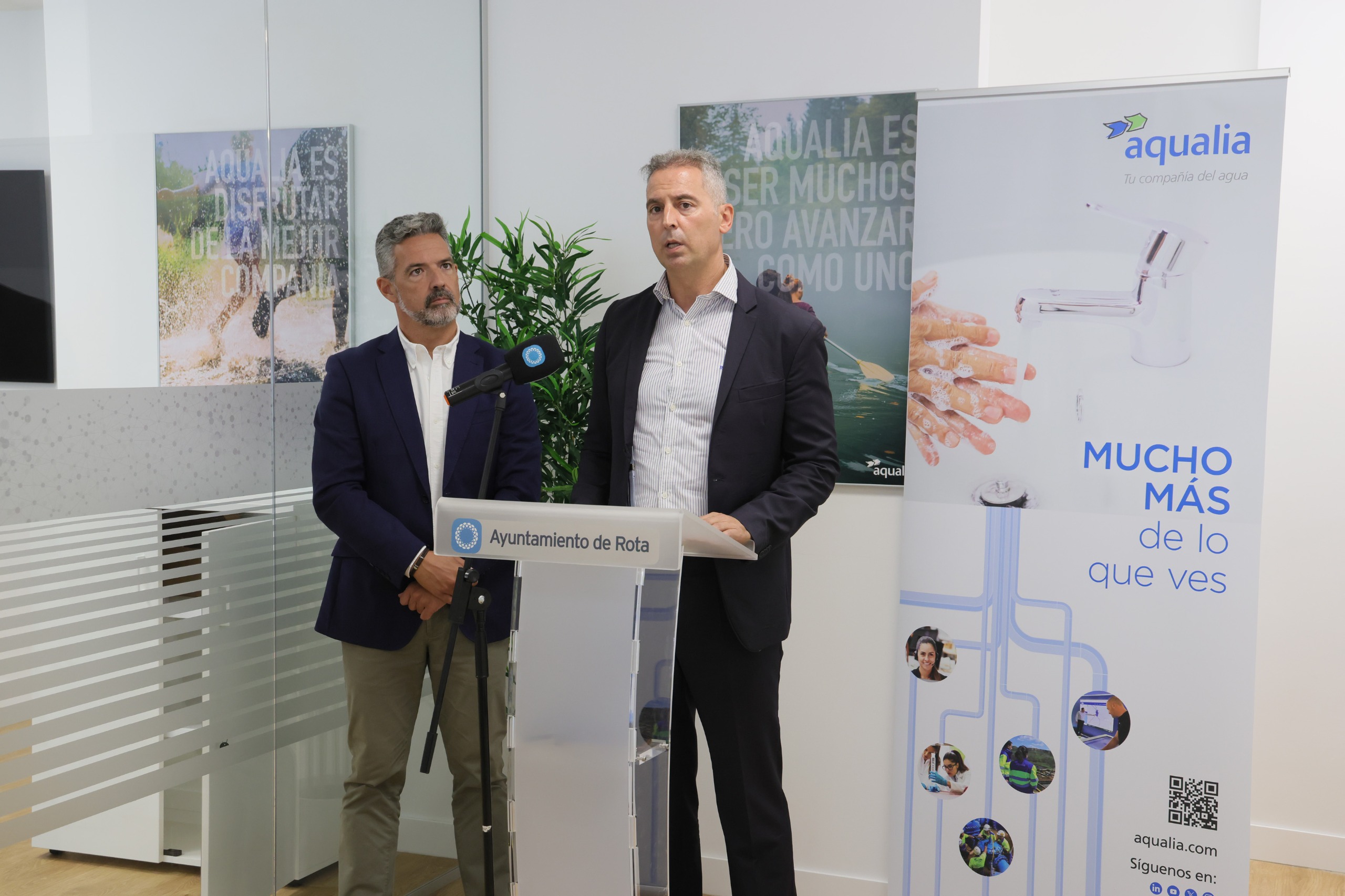 El alcalde de Rota y el director de Aqualia en Cádiz han inaugurado esta nueva oficina, uno los compromisos y mejoras contemplados en el contrato firmado por el Ayuntamiento con Aqualia