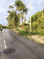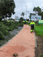 Personal de Protección Civil, Servicios Generales, Limpieza, Parques y Jardines y Policía Local trabajan sobre el terreno para asegurar y abrir de nuevo el entorno de la avenida Carla deOrleans, que ha sido la zona afectada