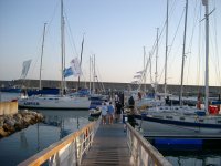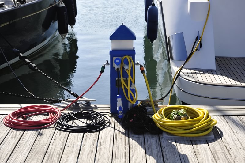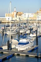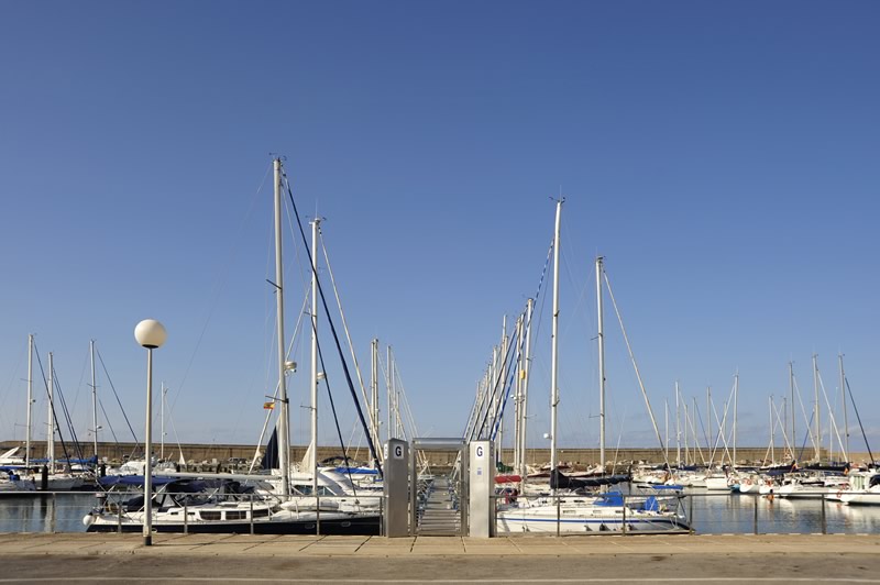 El acceso en coche es desde la Avda. San Juan de Puerto Rico, situándose el puerto deportivo en la zona central y el puerto pesquero a la izquierda,