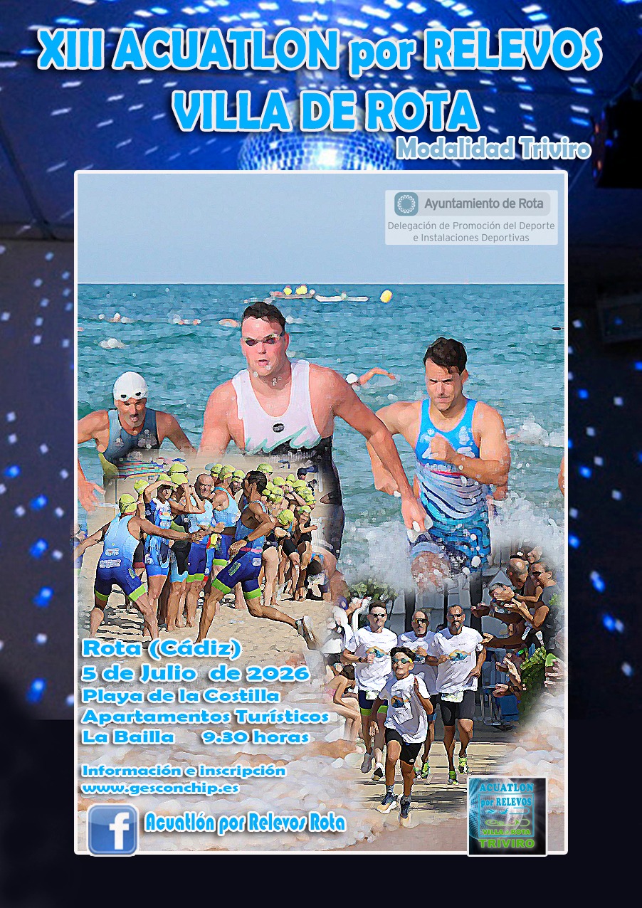 El evento, organizado por el Club Triviro con la colaboración de la Delegación de Deportes del Ayuntamiento de Rota, se celebrará el domingo 5 de julio de 2026 en la playa de la Costilla.