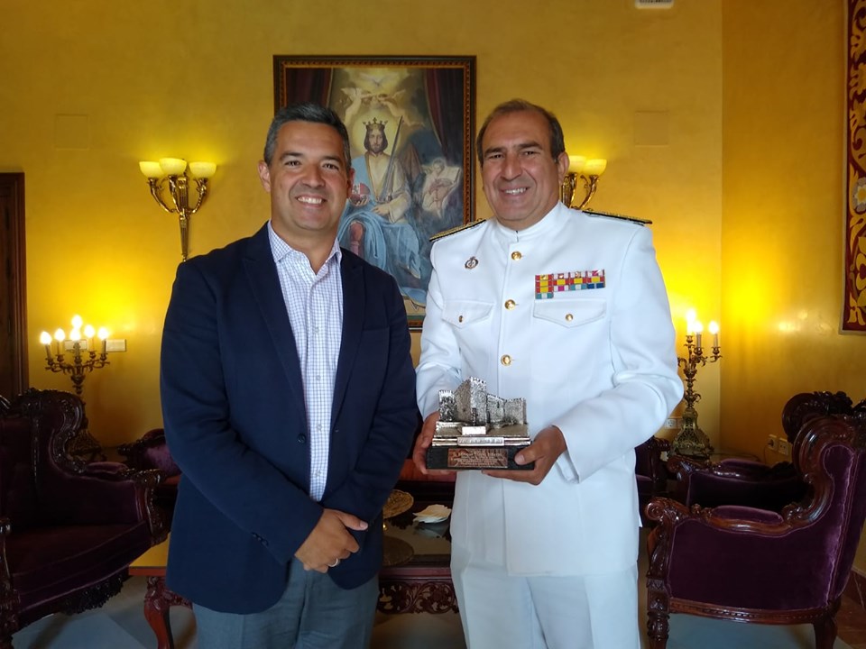El Alcalde de Rota, José Javier Ruiz Arana, ha recibido este jueves en el Palacio Municipal Castillo de Luna al Almirante Jefe del Arsenal de Cádiz, Enrique Torres Piñeyro, con motivo de su cese en el cargo en la Base Naval de Rota.