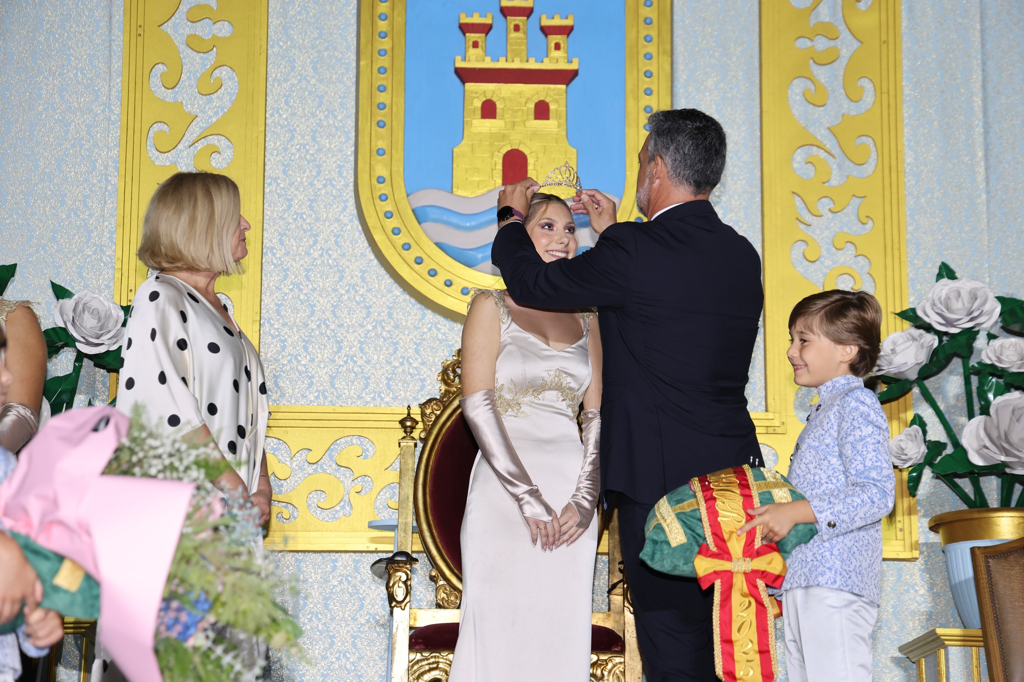 Así, ya coronada, la Dama Mayor ayudada por sus Pajes ha ido imponiendo las bandas a las Damas de su Corte de Honor.