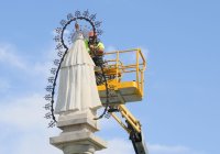Operarios de Parques y Jardines han colocado las coronas, cetro y rosario ya restaurados y tratados para su mejor conservación en exterior