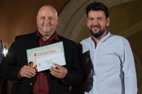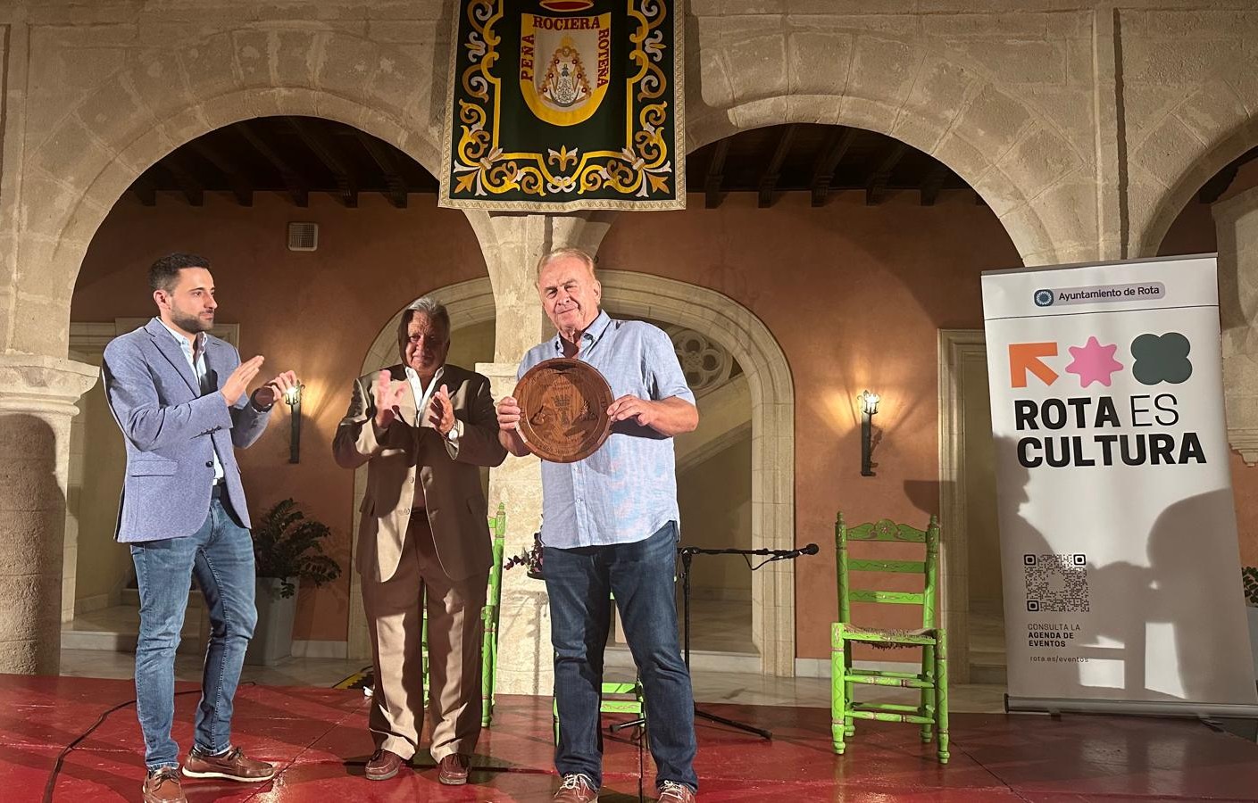El delegado municipal de Cultura, Pablo Gómez, fue el encargado de entregar el reconocimiento al roteño Miguel Moyares, al que se dedicaba esta edición del concurso.