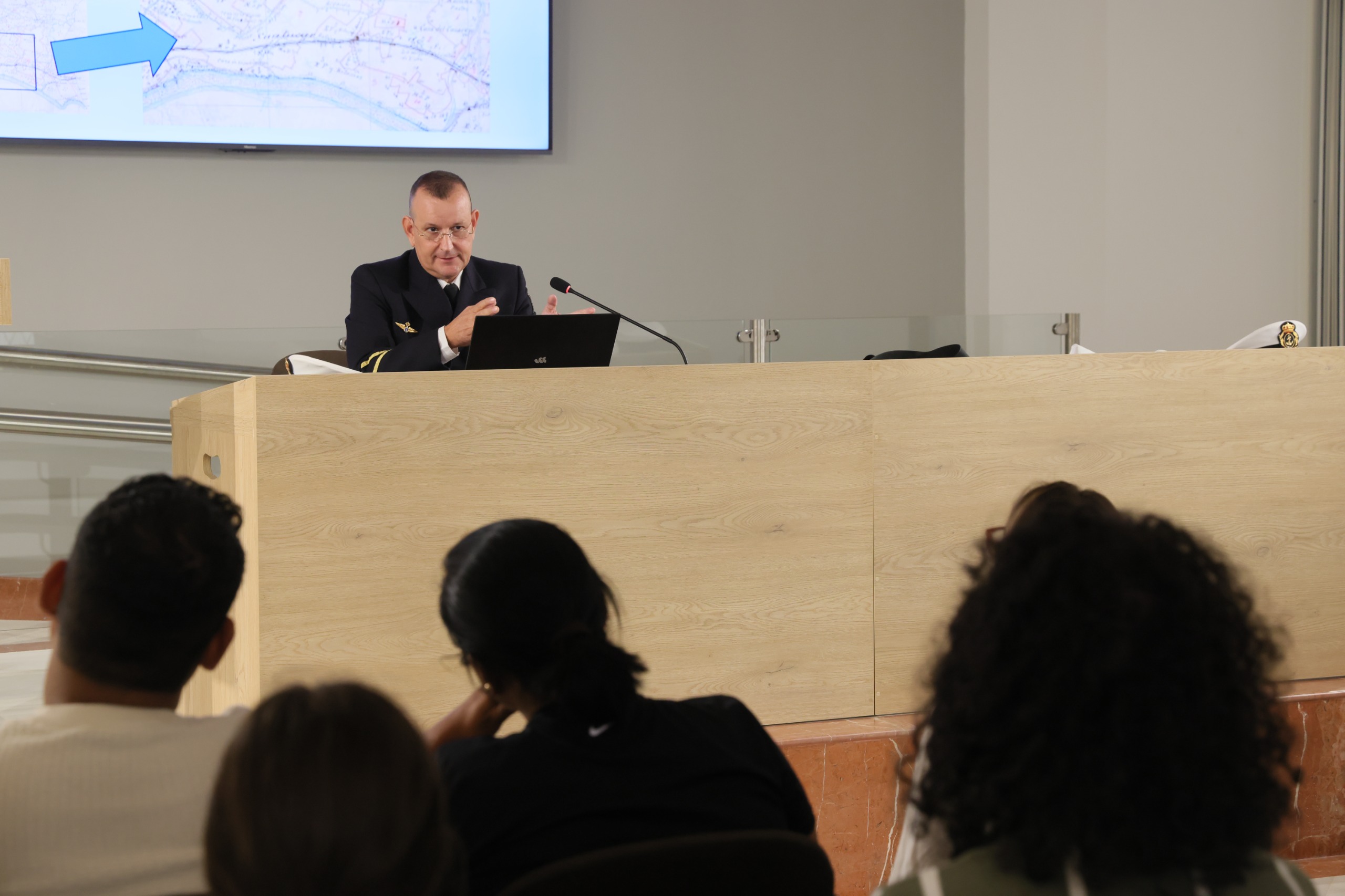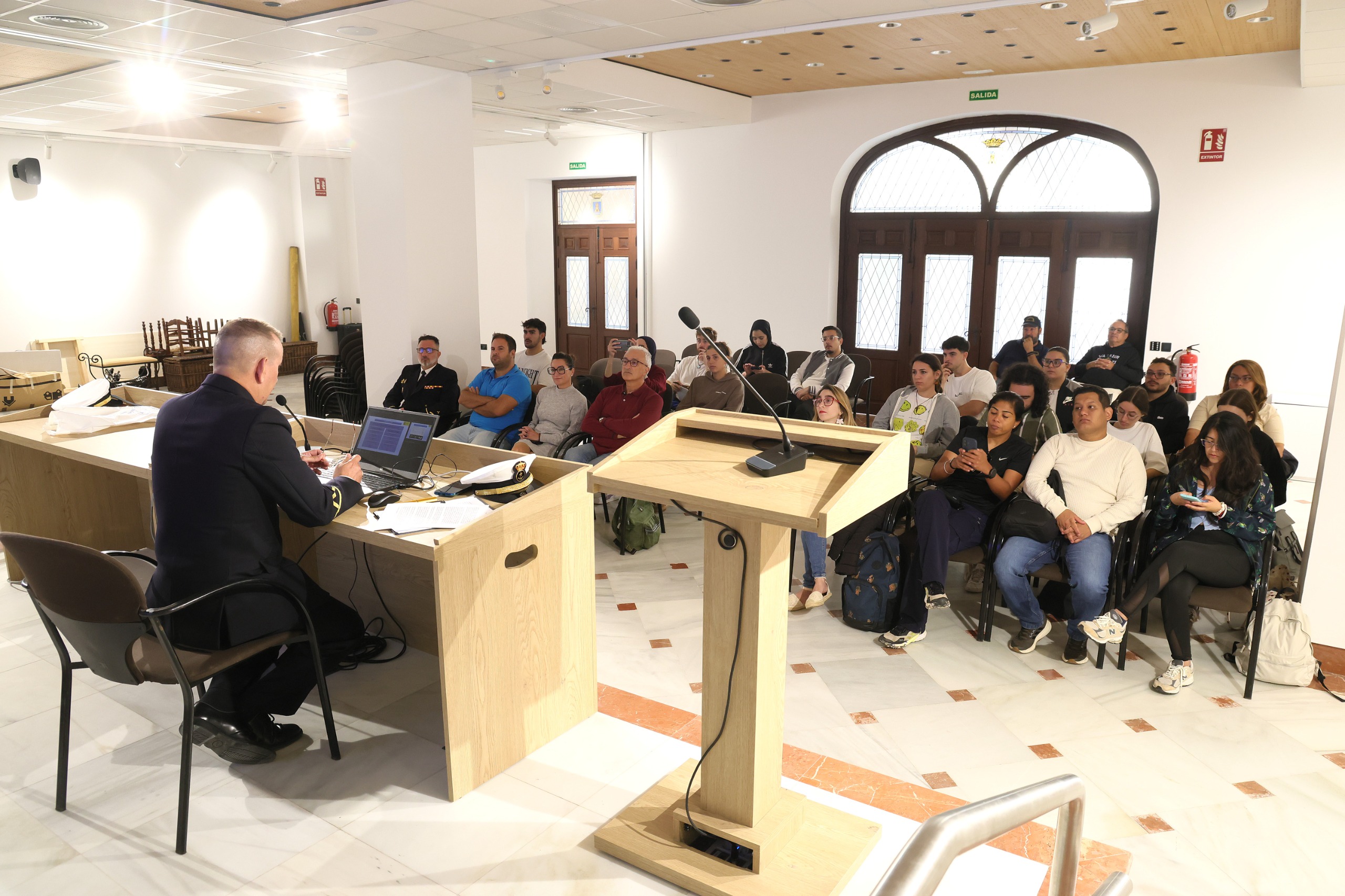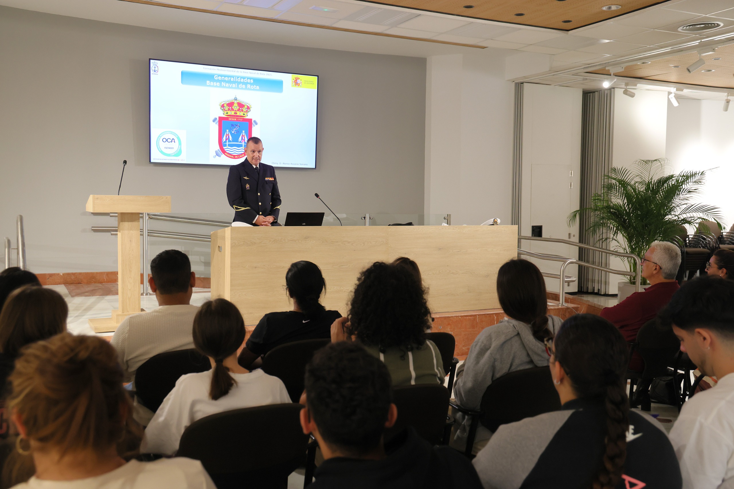 Tras esta visita, guiada por Andrés Barba de la Asociación de Corraleros de Rota, el alumnado ha participado en una interesante charla sobre los protocolos ambientales que se aplican en la Base. El cabo mayor de la Armada, Alonso Ascanio Soriano, con la asistencia del subteniente Salvador Rodríguez Gil, han sido los encargados de impartir esta ponencia en la que se ha hablado de las servidumbres actuales en el medio marino y terrestre, las áreas de exclusión (marinas y terrestres) y los mecanismos de coordinación con otras administraciones, incluida la local, entre otros aspectos.