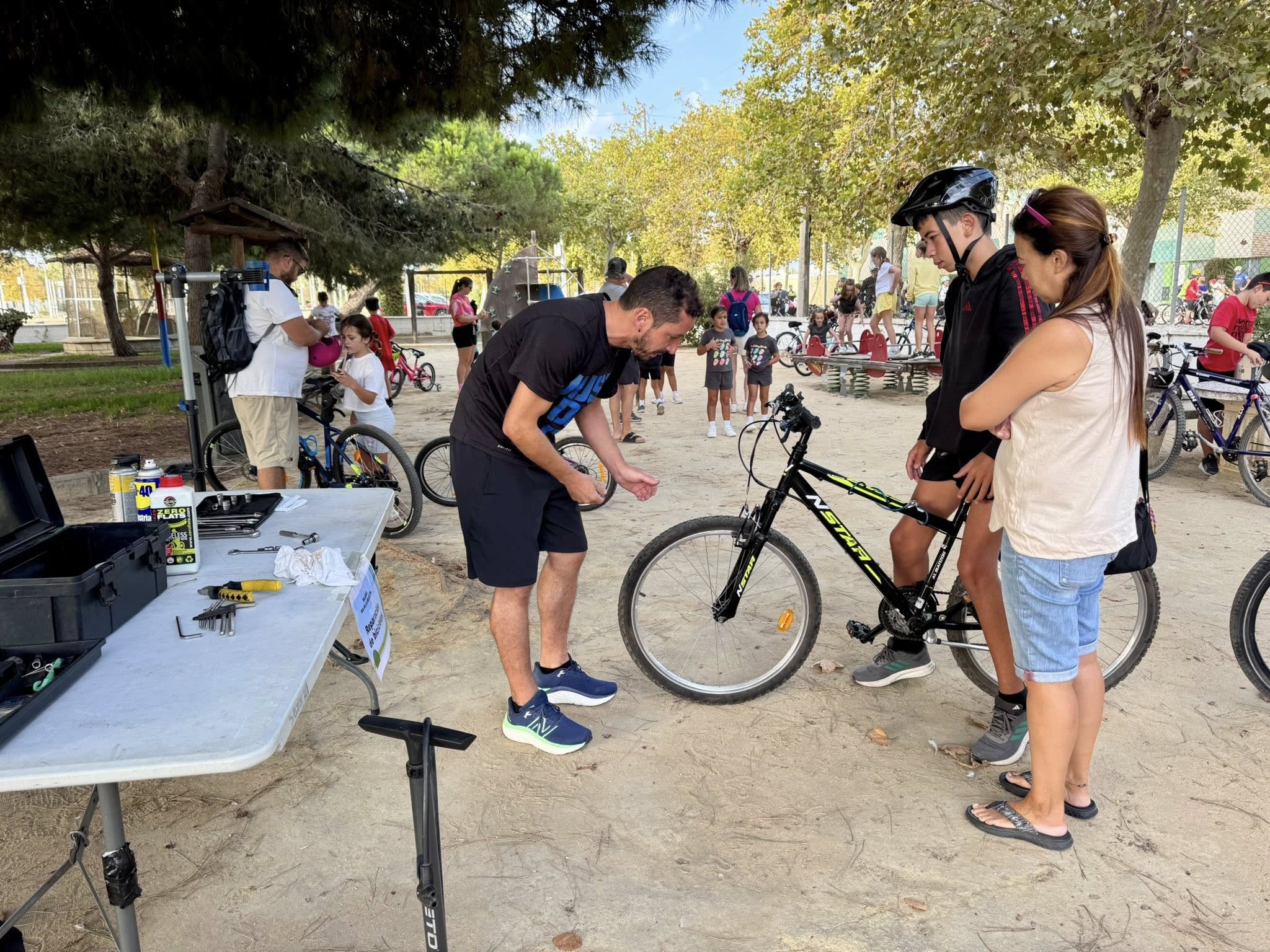 Este “Día de la Bicicleta” organizado con la Delegación de Promoción del Deporte, dirigida por la concejala Luisa Fernández, y que contó con la participación de Protección Civil, Policía Local y Medio Ambiente, comenzaba con un taller de revisión de bicicletas, asegurando que todos los participantes estuvieran listos para recorrer las calles de Rota de manera segura.