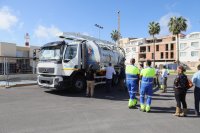 Así, el primer edil explicó que "este nuevo camión está enfocado a la limpieza de imbornales y tiene como cometido garantizar que la evacuación de aguas en la localidad funcione con total garantía, como ha venido sucediendo, pero de una forma mecanizada, mucho más eficaz y mucho más ecológica", ya que como indicó este nuevo recurso cumple con las garantías medioambientales exigidas en los distintos contratos.